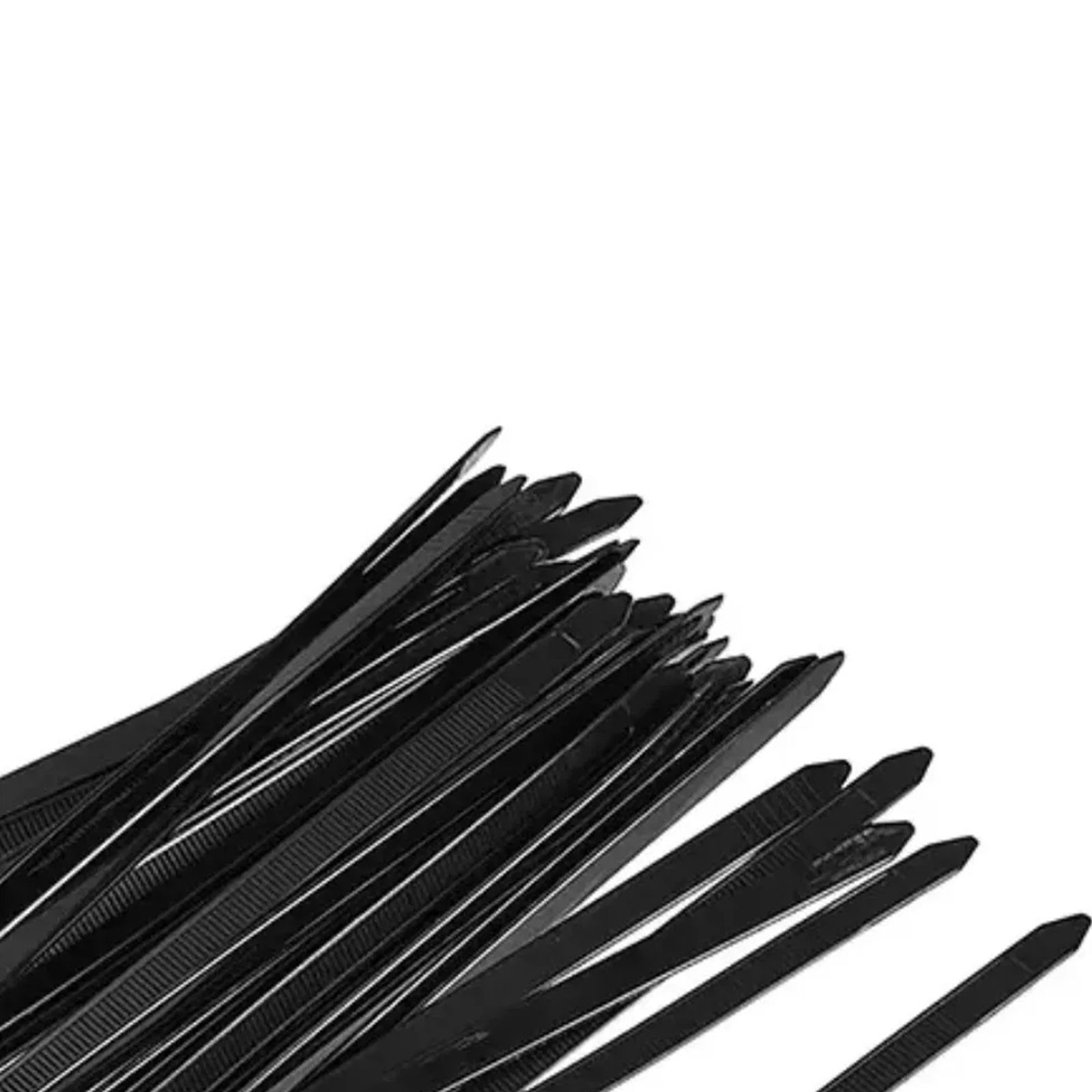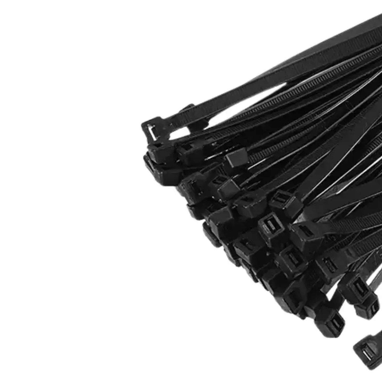 Cinchos plásticos negros de 2.5 × 100 mm, ideales para sujeción y organización de cables en instalaciones eléctricas, electrónicas y trabajos de mantenimiento. Fabricados en material resistente para uso práctico y seguro.