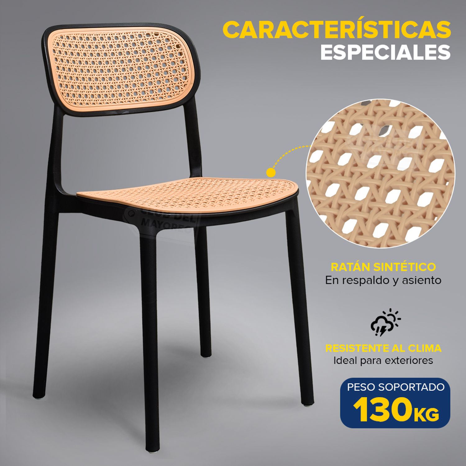 Con la Silla de Plástico Ratan Negro, tendrás una opción duradera, funcional y de gran estilo para disfrutar al aire libre.