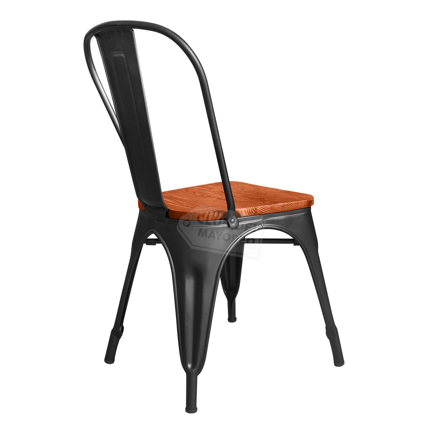 Silla Tolix Metalica Apilable Negro Mate y Madera en Asiento marca Calandria