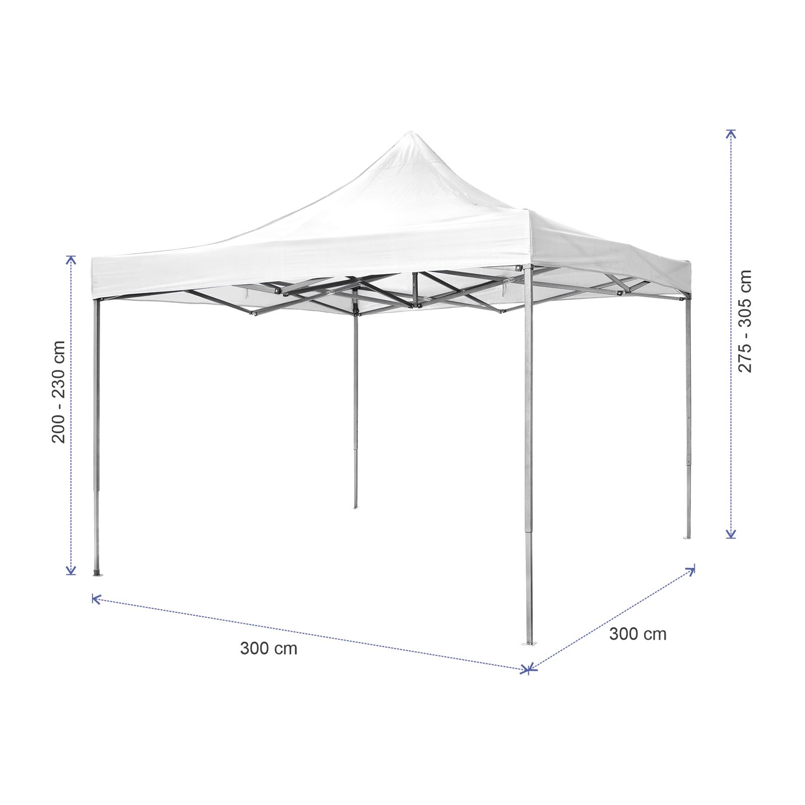 Toldo plegable de 3 x 3 metros con diseño práctico y funcional. Su lona color blanco ofrece una apariencia limpia y elegante, ideal para eventos sociales, exposiciones o jardines.